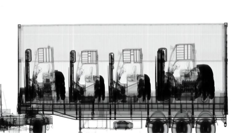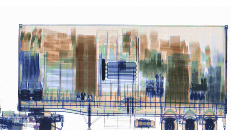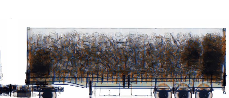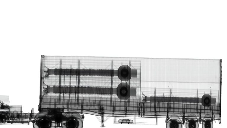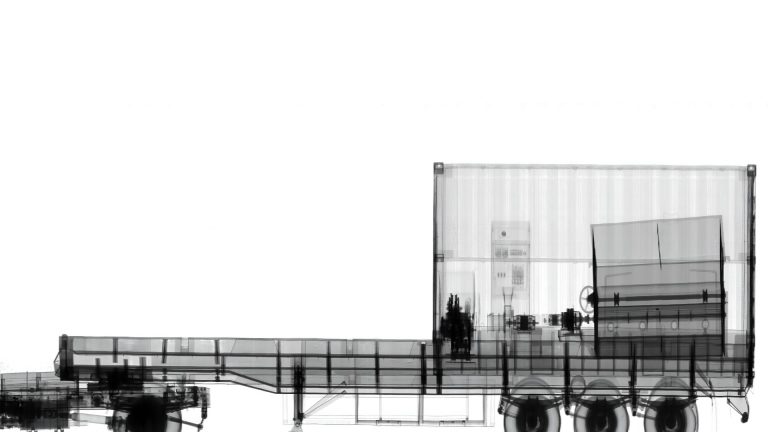 The scanner is mounted on a trailer, allowing the lorry head to be easily swapped,