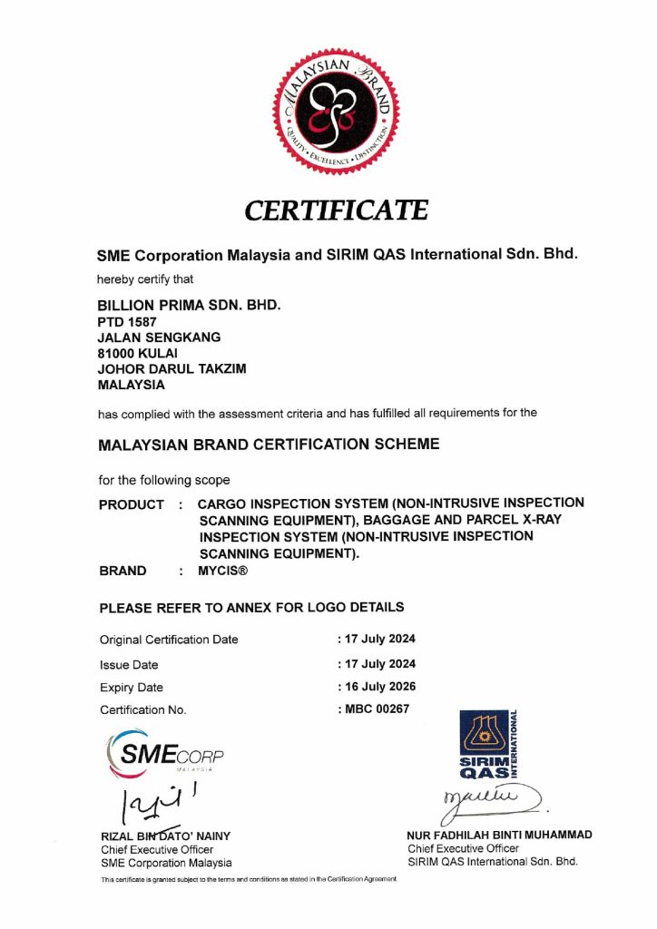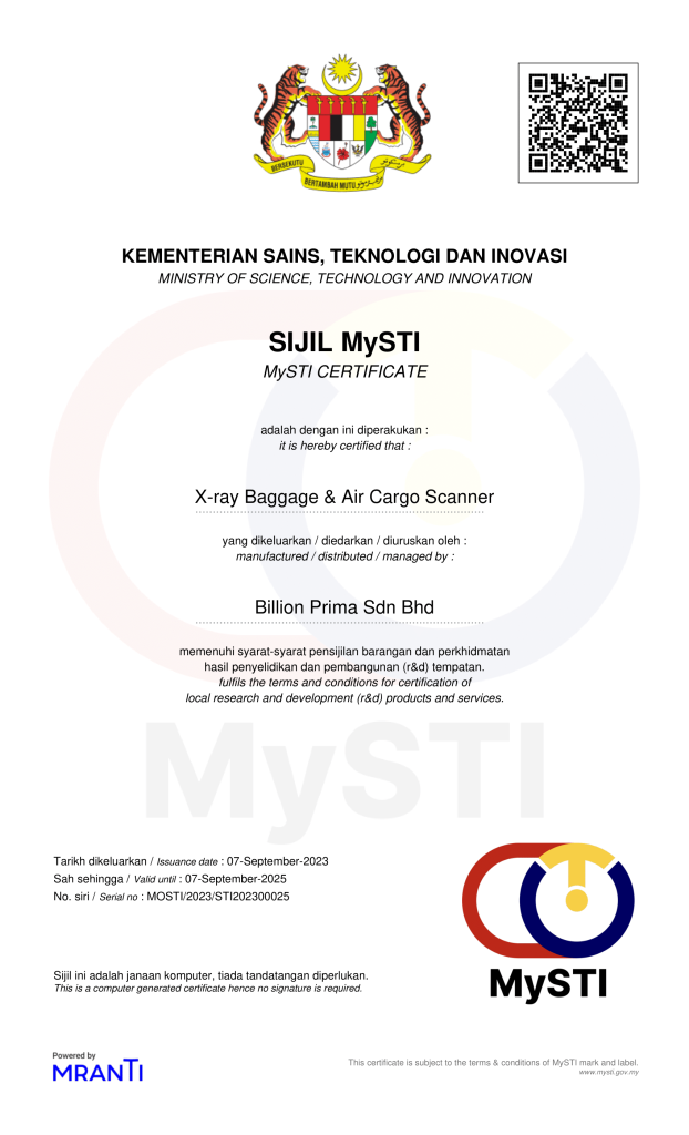 Our X-Ray Scanners are certified to meet Malaysia’s rigorous standards, Ensuring Top-Quality, Reliable, and Safe Inspection Solutions.